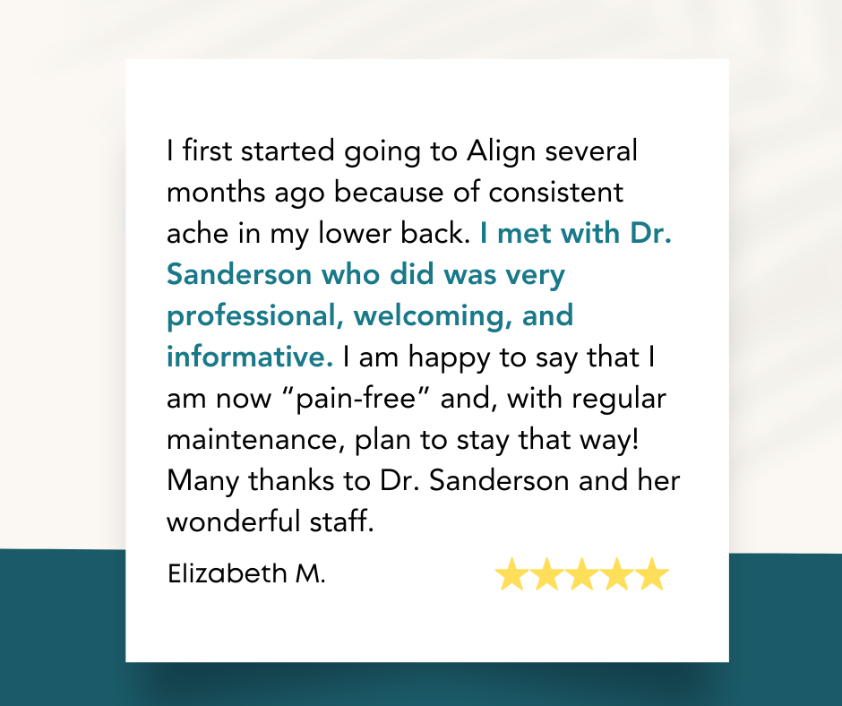 We hope that you realize that care is something that is valuable and that you realize that this is part of life. Just as you would brush your teeth every morning, that care at Align Health center is integral in you being the optimal version of yourself, allowing you to thrive in the body that you’ve been given.